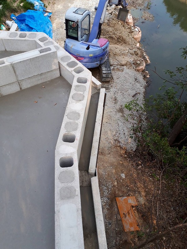 地滑りした土手の復旧工事を行いました。